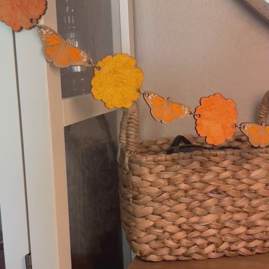Banner with Orange & Amber Marigolds paired with Orange Butterflies